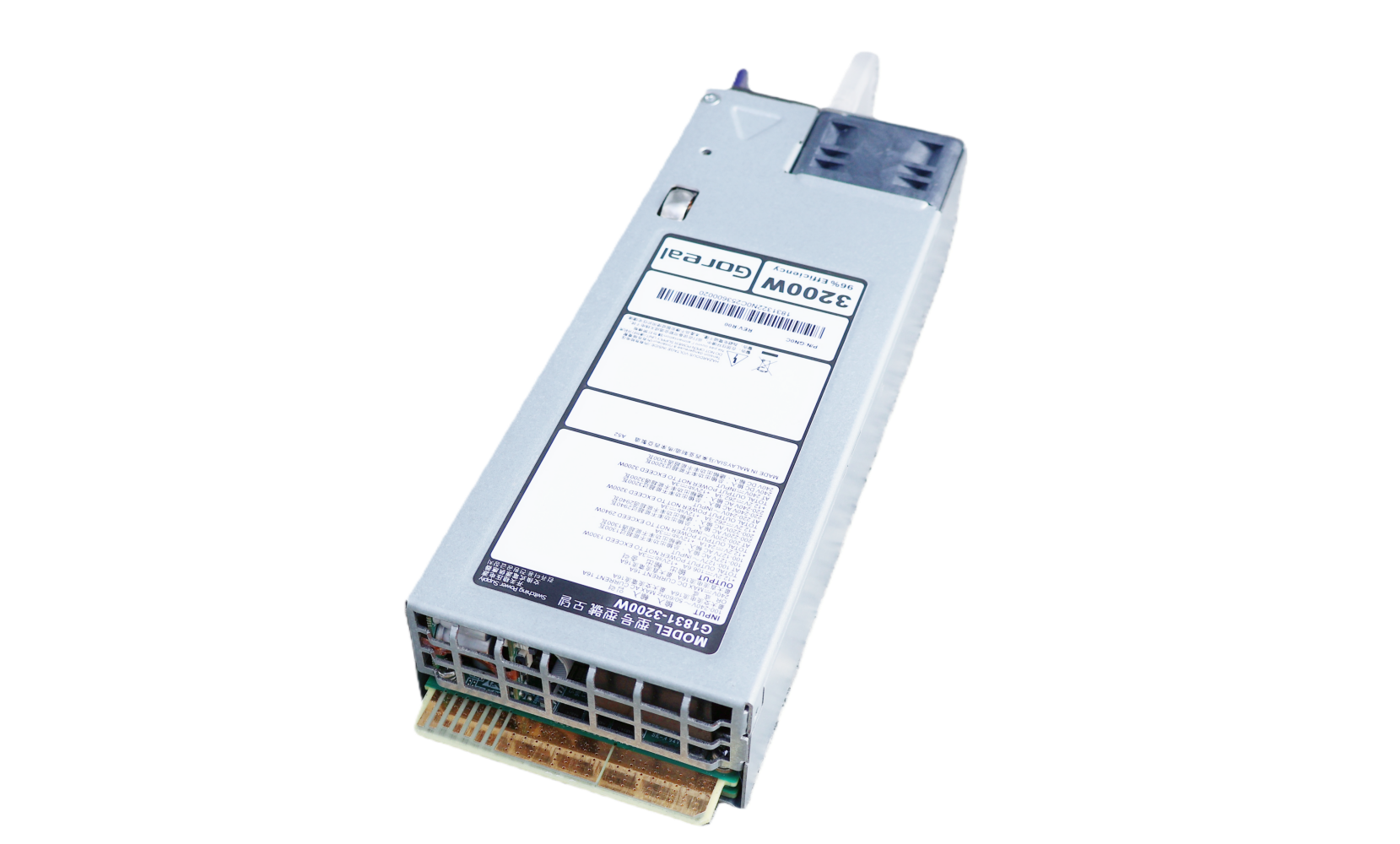 G1831-3200W meet Open Compute Project M-CRPS the latest Version .Output power 3200W has 10mS holdup time and 180% EDPP can cover almost GPU Load